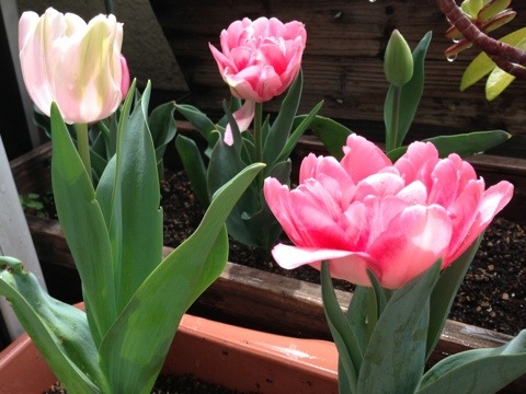プランターに土と肥料を入れて、球根を植えたら冬の間は時々水やりするだけでこんなにキレイに咲いてくれました。